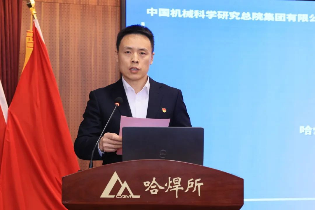 哈焊所黨委書記、董事長雷振致歡迎辭;集團黨群工作部(黨委宣傳部)副部長付占文作工作報告;哈焊所、基礎(chǔ)院圍繞弘揚科學家精神、思想政治“五心”工程建設(shè)作交流發(fā)言。